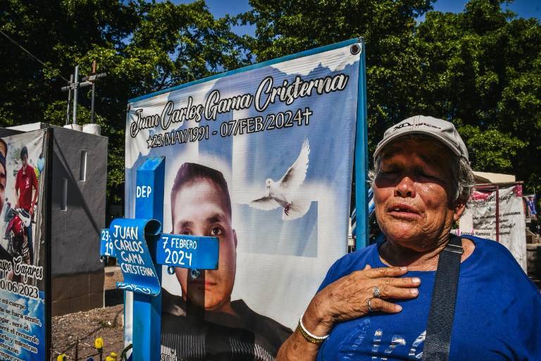En el marco de las celebraciones del Día de Muertos, María Guadalupe realiza un emotivo recorrido hacia la tumba de su hijo, Juan Carlos Gama Cristerna, en el cementerio 21 de marzo de Culiacán.