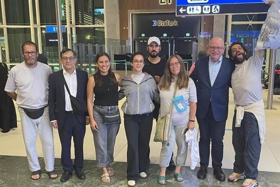 Seis activistas mexicanos que habían sido detenidos por las autoridades israelíes al intentar llevar ayuda humanitaria a la Franja de Gaza fueron repatriados a México, haciendo una escala en Türkiye. Este grupo salió de Israel a través de Jordania, acompañado por el Embajador de México en Jerusalén, Mauricio Escanero. En el aeropuerto de Estambul, fueron recibidos por el cónsul mexicano en esa ciudad, Alberto Fierro.