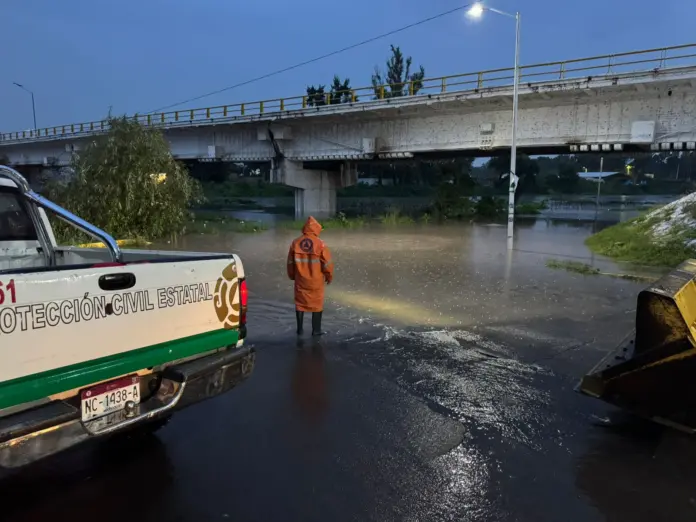 Las consecuencias fueron inmediatas: vehículos varados y la caída de un árbol complicaron aún más la situación. Las colonias que se encuentran a la orilla del río Lerma enfrentan un riesgo crítico, ya que el caudal del río ha aumentado considerablemente, desbordándose en algunos puntos y anegando viviendas en el Fraccionamiento El Malecón.
