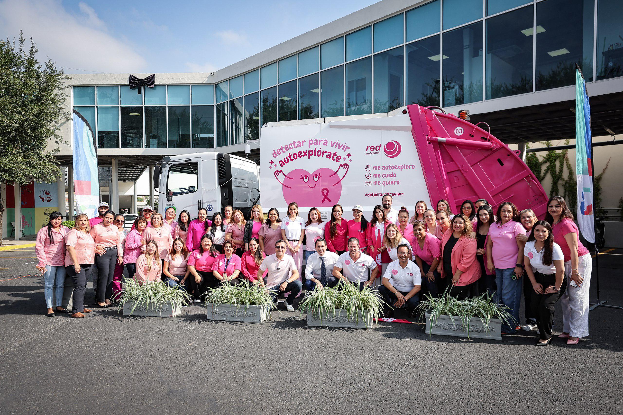 Los camiones recolectores de residuos de la empresa Red Ambiental, que operan en la región, llevarán mensajes de concientización sobre la autoexploración durante sus rutas diarias. El alcalde Mauricio Farah Giacomán fue el encargado de dar el banderazo de salida a estos vehículos pintados de rosa, destacando la necesidad de elevar la conciencia sobre esta enfermedad que afecta a muchas mujeres.