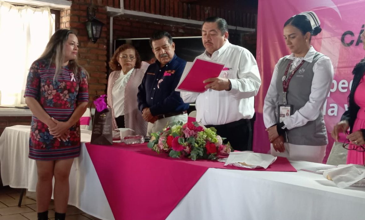 Durante el acto, la maestra Marlene Berenice García Zambrano, sobreviviente de cáncer, compartió su experiencia, describiendo su diagnóstico como “una sentencia de cambio y no de muerte”. Explicó que, tras cinco años de tratamiento con tamoxifeno, continúa su proceso con un nuevo esquema de bloqueo hormonal. “El cáncer me cambió la vida, me enseñó a priorizarme y a enfrentar la enfermedad con emociones sanas y esperanza”, afirmó.