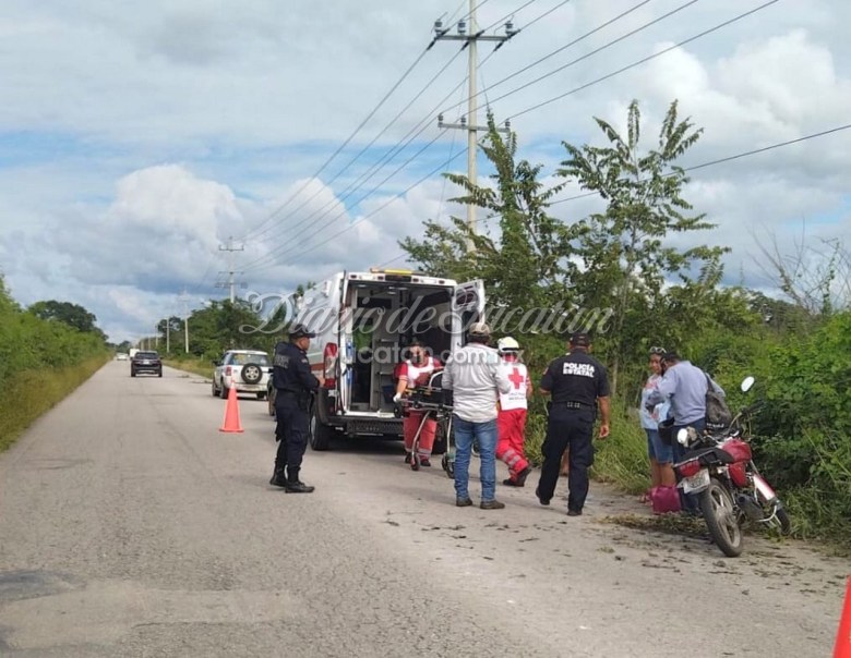 TIZIMÍN.- Este miércoles por la mañana, una pareja de adultos mayores que viajaba en motocicleta sufrió un accidente en el tramo de la carretera Tizimín-Colonia Yucatán. El incidente dejó a ambos lesionados tras el derrape de su vehículo.
