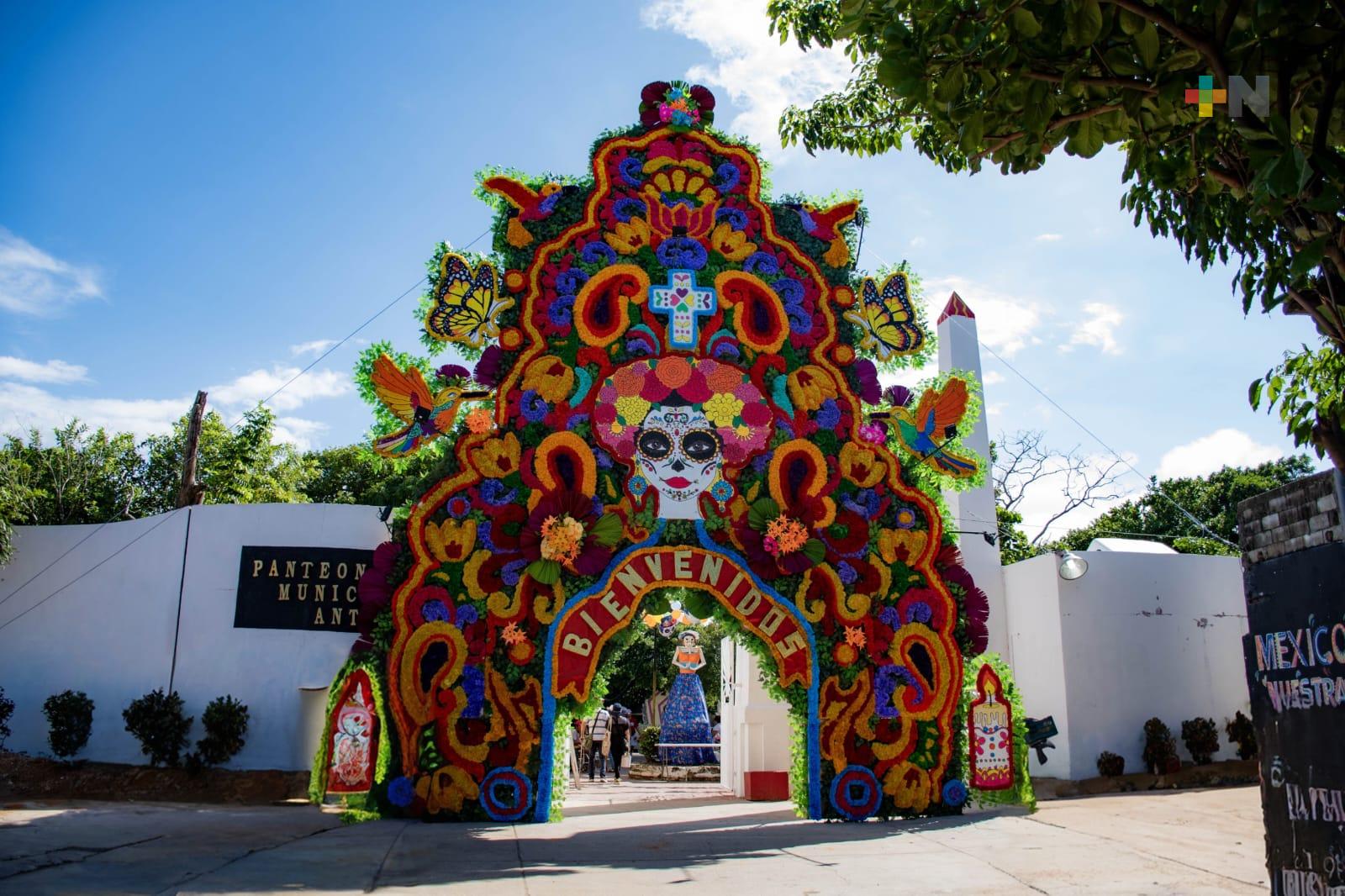 Los panteones de Coatzacoalcos y otros lugares de la ciudad se están adornando con motivos del Día de Muertos, según informó la directora de Turismo Cultural en el puerto, Maritza Mijares Díaz. Este fin de semana, se pudo observar que la emblemática pirámide de Quetzalcóatl ya está adornada con flores de cempasúchil.