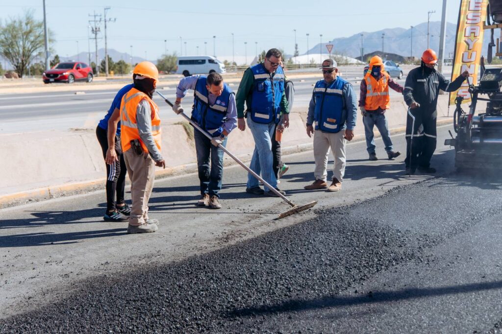Chihuahua, Chih. – El alcalde Marco Bonilla supervisa personalmente los trabajos de recarpeteo que se realizan en la lateral del boulevard Fuentes Mares, en el tramo que va desde la calle José Velázquez hasta la Francisco Portillo. La obra comenzó este martes y beneficiará directamente a más de 100 conductores que utilizan esta vía diariamente para llegar a sus hogares y centros de trabajo.