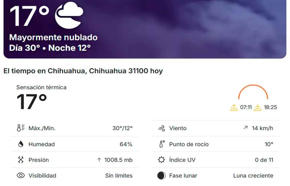 Detalle del pronóstico y recomendaciones para hoy en Chihuahua