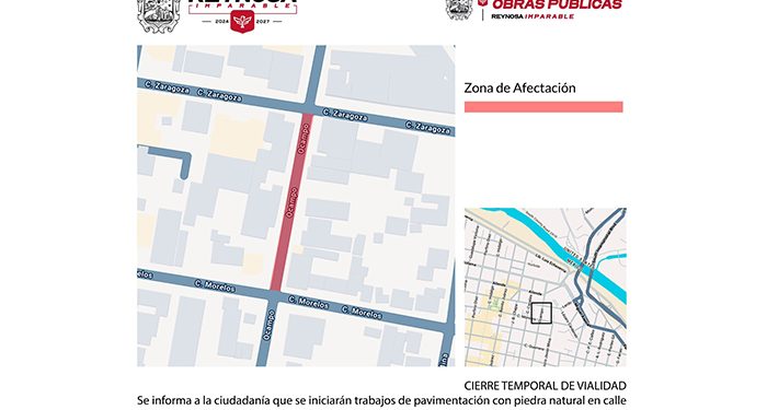 La medida impacta de manera directa la circulación vial en una de las zonas más transitadas de Reynosa, por lo que se exhorta a los ciudadanos a tomar vías alternas y conducir con precaución para evitar incidentes o congestionamientos. Esta obra forma parte de los esfuerzos recientes por mejorar la imagen urbana y la infraestructura del centro de la ciudad.