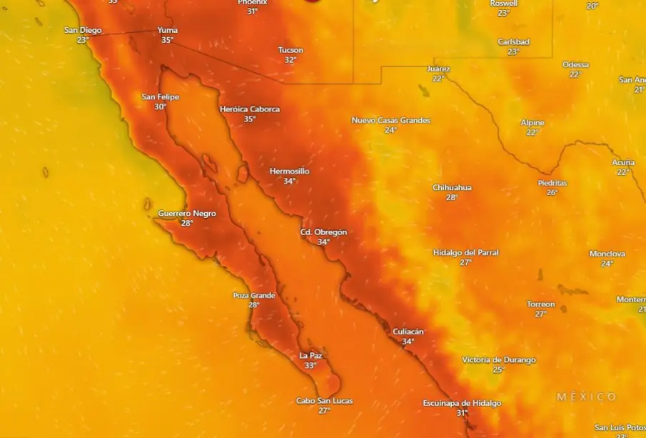 En contraposición, Los Cabos presentó un ambiente más templado con máximas de 29 grados acompañado por ráfagas de viento del sur que alcanzaron hasta 38 km/h. Estos vientos moderados contribuyeron a moderar la sensación térmica, favoreciendo un clima más confortable para residentes y turistas.