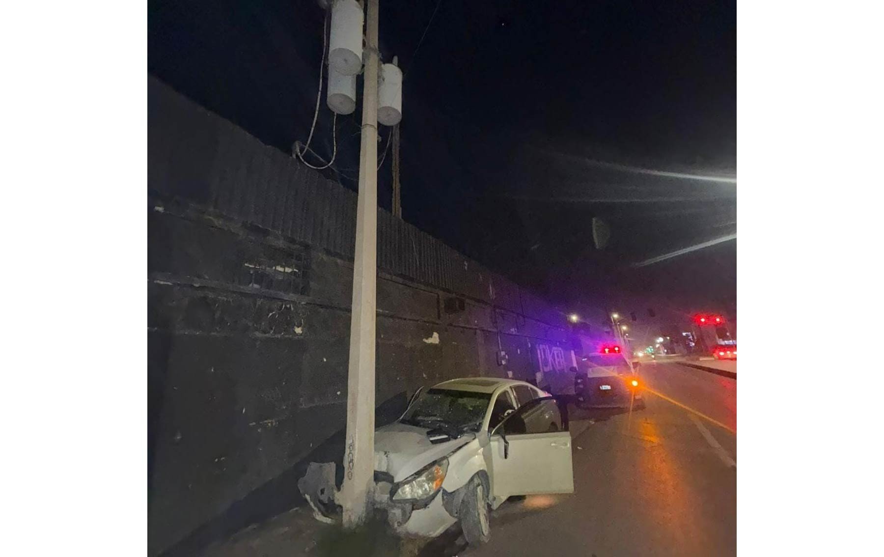 El accidente se reportó poco después de la 01:00 horas, cuando un automóvil Subaru blanco modelo 2008 con placas AZRY74 se estrelló contra un poste que pertenece a la Comisión Federal de Electricidad (CFE) y la barda exterior del bar.