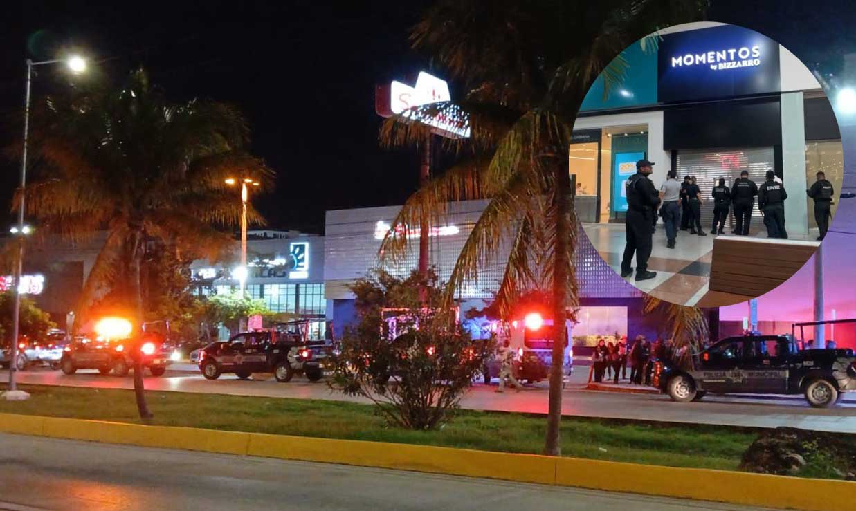 Esta noche, alrededor de las 7:45 p.m., cuatro jóvenes armados intentaron perpetrar un robo en la joyería Momentos By Bizzarro, ubicada dentro del centro comercial Plaza Las Américas en la Supermanzana 7 sobre avenida Tulum, en Cancún.