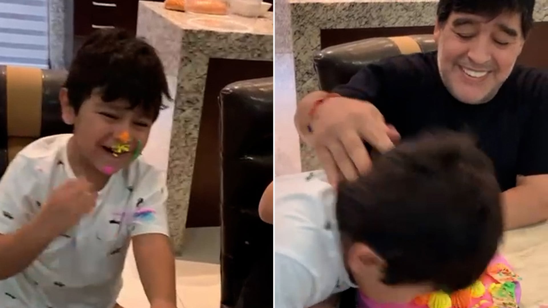 El adolescente, de apenas 12 años, publicó en Instagram un emotivo clip de un cumpleaños pasado donde aparece junto a su padre, el legendario número 10. En la secuencia se ve a Maradona sonriente y juguetón, intentando enterrar el rostro de su hijo en una torta, hasta que ambos estallan en risas. Es un momento de cariño puro que conecta a la familia más allá del mito y la historia pública.