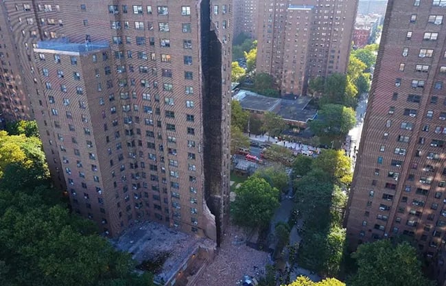 Una explosión de gas en un pozo de incinerador provocó el colapso parcial de un edificio de viviendas públicas en el Bronx esta mañana. El incidente tuvo lugar en el complejo Mitchel Houses, ubicado en Alexander Avenue, cerca de East 135th Street.