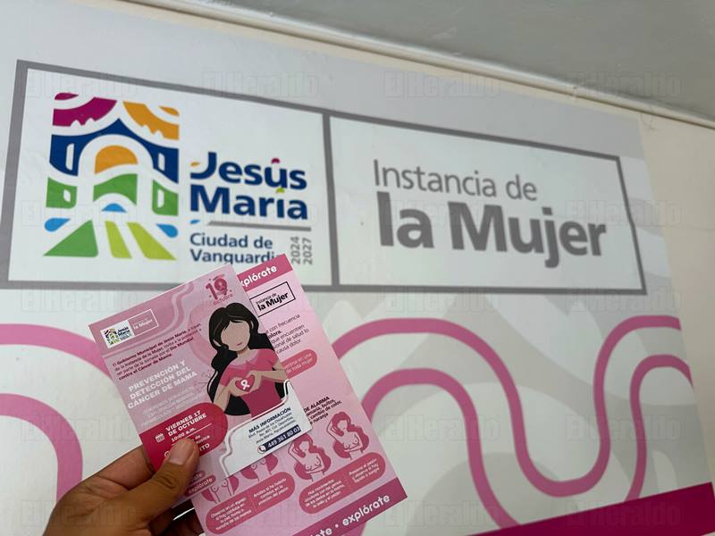 El Gobierno Municipal de Jesús María, a través de la Instancia de la Mujer, lanzó una jornada urgente de prevención y detección oportuna del cáncer de mama que recorrerá las principales delegaciones del municipio del 13 al 17 de octubre.