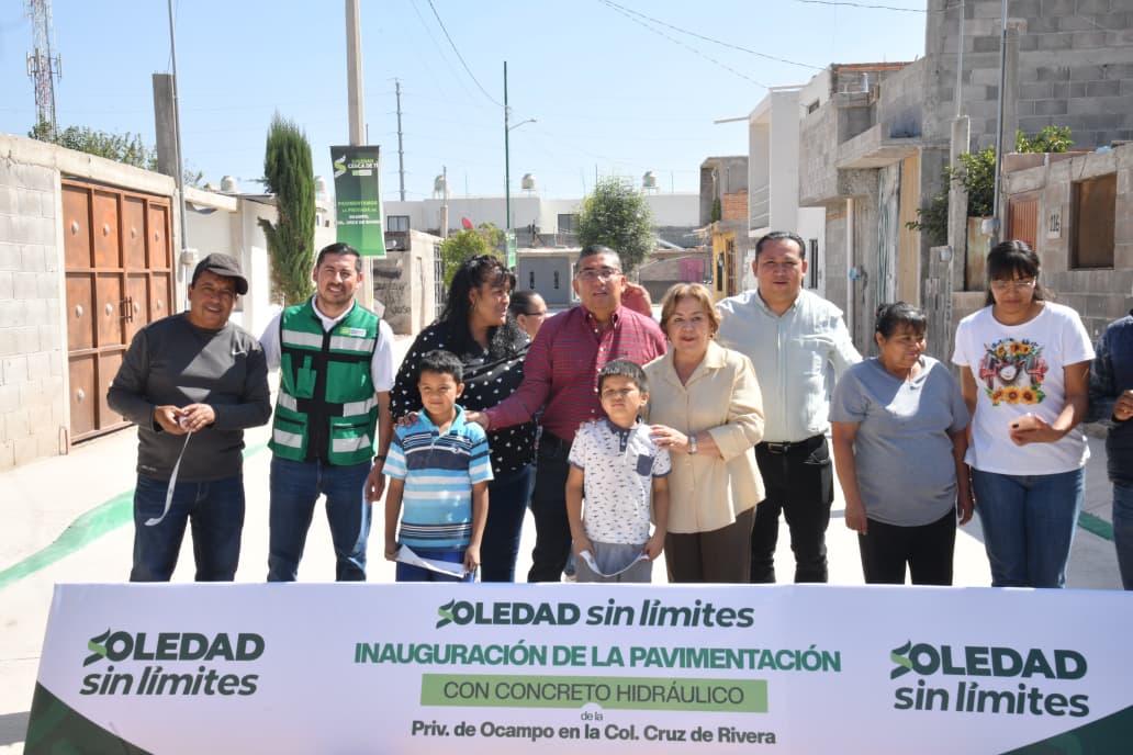Con una inversión superior a 1.6 millones de pesos, el alcalde de Soledad de Graciano Sánchez, Juan Manuel Navarro Muñiz, encabezó la entrega de la pavimentación con concreto hidráulico en la Privada de Ocampo, ubicada en la colonia Cruz de Rivera. Esta acción representa un cambio radical para las familias beneficiadas, quienes ahora cuentan con una vialidad completamente renovada y funcional.