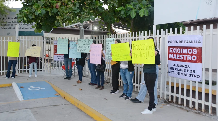Ciudad Victoria, Tam.- Un grupo de padres y madres de familia de la Escuela Primaria Leona Vicario tomó el acceso principal del plantel desde las 5:30 de la mañana de hoy jueves, en una protesta pacífica que paraliza parcialmente la institución.