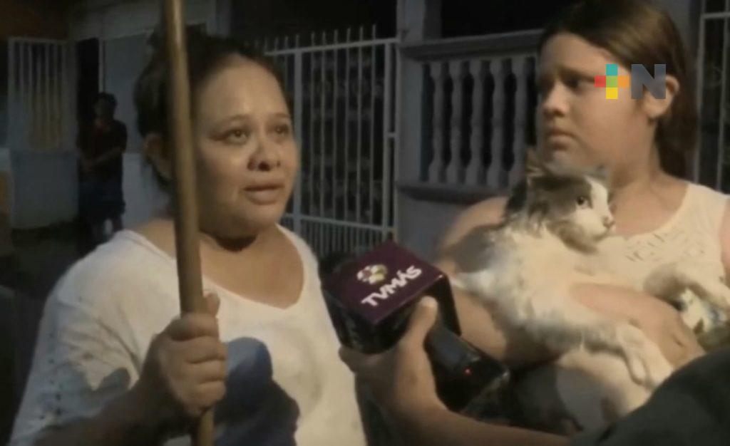 “A las 2 de la mañana nos dijeron que teníamos que evacuar y sí lo hicimos, evacuamos, pero el gatito se espantó, estaba atorado en el árbol. Vinimos cuando ya bajo el lodo, agua y todo. Lo bajamos del arbolito y nos lo llevamos. En la casa de mi suegra, en el hueleque, ahí estuvimos resguardadas. Pero ya todos juntos, muchas gracias”