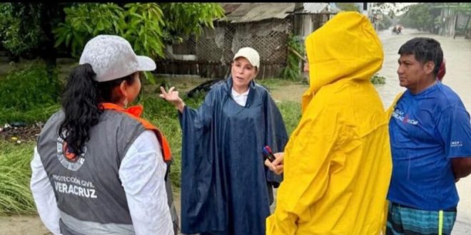Rocío Nahle García, gobernadora de Veracruz, supervisó hoy las afectaciones provocadas por las intensas lluvias que azotan la región norte del estado, realizando un sobrevuelo en los municipios de Gutiérrez Zamora, Poza Rica y Coatzintla. La mandataria constató el comportamiento de los ríos, accesos carreteros y zonas con anegamientos, confirmando que la población afectada recibe atención inmediata de autoridades estatales y federales.