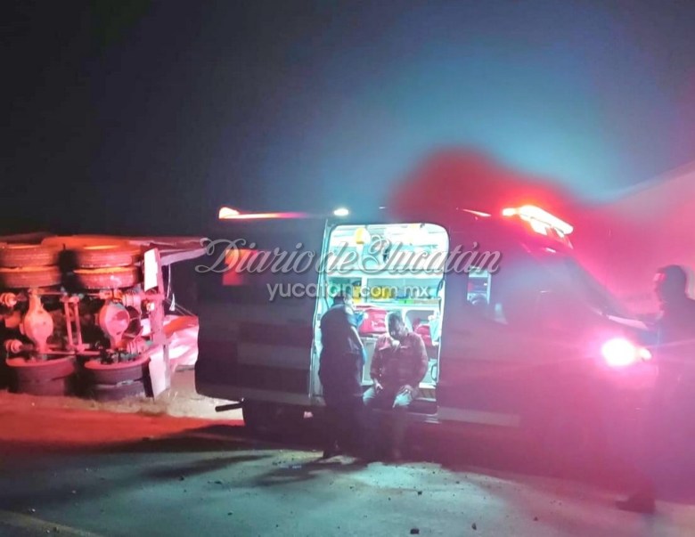 Río Lagartos, Quintana Roo – Un tráiler de doble remolque que transportaba sal volcó la noche de ayer jueves alrededor de las 10:00 pm en una curva cerrada de la carretera del tramo Río Lagartos-Las Coloradas, en la zona conocida como Cancunito, informaron autoridades locales.